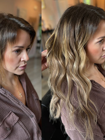 Indulge in effortless beauty with our luxury, Maine Extension CO weft hair extensions. By using a beaded method we attach beads to small hair sections, we create secure anchors, seamlessly sewing our wefts into these sections. Typically, 1-3 rows are installed depending on desired look and needs. This technique not only adds length and volume but also allows for color dimension without a permanent change. Custom color matching is an option for a seamless match using different colored wefts. With following simple care instructions provided by our stylist our extensions can last 6-9 months, with regular at home maintenance and reinstalling rows every 6-8 weeks. Discover the beauty of high-quality hair that boosts confidence and leaves you feeling fabulous.